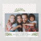 Cette carte de vœux de Noël élégante présente une photo de paysage de votre famille avec un message personnalisé "Joyeux Noël" encadré par des branches hivernales vertes de style aquarelle avec des baies rouges. Un design coordonné avec des points peints en rouge et une couronne de Noël avec un texte personnalisé habille l'arrière de la carte.