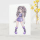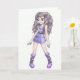 Carte de voeux avec la fille dans le pourpre