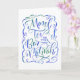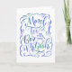 Carte tov mazel pour bar mitzvah, lettrée à la main en aquarelle dans les bleus et les verts.