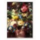 Une nature morte florale vibrante est posée sur un crâne souriant. De riches fleurs aux tons de bijoux embellissent ce memento important. Prenez le temps de sentir les roses et envoyez une belle carte de vœux...Personnalisable selon votre choix de couleur de fond et de texte. Qu'est-ce que vous attendez ?