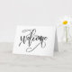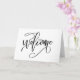 Bienvenue écrit en calligraphie noire sur une carte de voeux blanche.