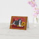 Carte de vœux, Cavalier King Charles Spaniel, Tri. Ce cavalier spaniel, est "Aussi joli qu'un tableau" et elle se détend dans un environnement luxueux avec ses fleurs préférées, les tournesols. D'après une peinture originale de Carol Cross©. Profitez ! Bénédictions !