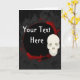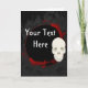 Cette carte de voeux vectorielle est dotée d'un crâne à la croûte avec des embellissements "sang" ornés et d'un champ de modèle personnalisable. Cliquez sur "Customiser" pour modifier la conception plus avant.