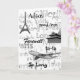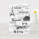 Carte de voeux d'adieu personnalisable faite en tonnes de gris, avec des noms de grandes villes et des clips de voyage superposés. Customisez le texte pour convenir à vos goûts.