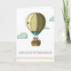 Jolie carte d'adieu avec une illustration d'un chat flottant dans un ballon à air chaud. Personnalisez le texte avec votre propre message ou langue. Illustré par Patricia Alvarez.