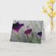 L'image sur la carte de voeux (d'anniversaire) comprend la variété rose-pourpre de fleurs sauvages de gloire de matin le long d'une barrière grise et en bois le matin d'un été ensoleillé.