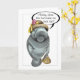 L'image de carte est d'un lamantin demandant le "miel, fait ce casquette m'incitent à sembler gros ?". Texte intérieur : "Ayez un grand, audacieux, bel anniversaire" le dos des anecdotes amusantes de listes de carte au sujet des lamantins.