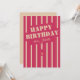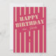 Une superbe carte de voeux minimaliste rose chaud ornée de rayures beiges et d'une bougie. Cette carte peut être personnalisée avec le nom du célébrant d'anniversaire.