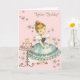Carte de voeux d'anniversaire rétro / Vintage. Adorable fille avec un beau gâteau d'anniversaire ! Un autre anniversaire ?