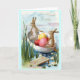 Lapins de Pâques victoriens vintages très mignons dans un bateau à rames avec les oeufs de pâques colorés comme peinture d'aquarelle.