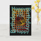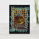 Carte de voeux de Celtic joyeux anniversaire avec la conception de style celtique originale numériquement augmentée de rondeau de triple-spirale sur un arrière - plan décoratif de motif de noeud avec des salutations d'anniversaire en gaélique irlandais anglais et traditionnel sur l'avant et l'intérieur.
