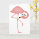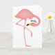 Une carte de voeux comportant une illustration d'un flamant avec le cou a courbé vers le bas. Personnalisez la salutation au-dessus de la tête du flamant.