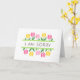 Jolie carte de vœux avec des tulipes printanières roses et jaunes et le texte "Je suis désolé"