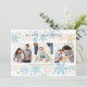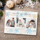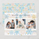 Cette carte moderne et délicate est parfaite pour envoyer des vœux de Noël et de fêtes à la famille et aux amis. Le design présente une décoration le long des bordures supérieure et inférieure, avec des flocons de neige de différentes tailles et de couleurs douces. Trois photos de famille sont affichées au centre. Cette carte élégante est idéale pour célébrer Noël et toutes les fêtes de la saison hivernale.