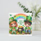 Carte de vœux de la Saint-Patrick avec un garçon et une fille mignons, pots d'or, trèfles, fleurs, animaux et un arc-en-ciel