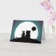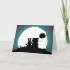 Jolie carte de vœux de mariage avec les silhouettes d'un lapin et d'un ours tenant un ballon assis sur une colline regardant la lune. Personnalisez le texte à l'intérieur pour qu'il dise ce que vous voulez.