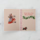 Cette belle carte de Noël à l'ancienne montre dans les années 1900 Victorian, jeune maison d'une journée de shopping de Noël. Marcher dans la neige avec des paquets et la couronne de Noël leur petit chien les fait passer pour créer une image de vacances charmante. Réimprimé sur cette carte de voeux de Noël.