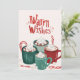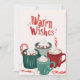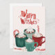 Adoptez l'esprit douillet des fêtes avec cette charmante carte de vœux représentant une illustration enchanteresse de tasses remplies de chocolat chaud, surmontées de guimauves floconneuses, de crème fouettée crémeuse et de cannes à sucre festives. Le texte en écriture ludique "Vœux chaleureux" est placé avec art au-dessus de l'image, capturant l'essence du réconfort et de la joie pendant la saison hivernale. Cette carte est parfaite pour envoyer des salutations sincères à vos proches, en répandant chaleur et joie pendant les célébrations festives.