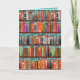 Livres de Noël sur une étagère avec saint, cette carte de Noël saisonnière est une idée pour les bibliophiles et les amateurs de livres, plus vous pouvez la customiser vous-même. À l'intérieur il dit Joyeux Noël Bolover! Les livres anciens sont d'auteurs célèbres dans le monde entier, principalement britanniques comme Jane Austen et Charles Dickens parmi d'autres trésors bien connus !