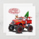 Carte de vœux de Noël dessin animé avec un Père Noël cool sur un monster truck