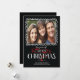 Envoyez une carte de Noël moderne et unique cette année que votre famille et vos amis adoreront. Notre carte de vacances photo contemporaine présente un cadre blanc fantaisiste pour votre photo avec une typographie disant "joyeux noël" sur un fond noir avec une bannière et un accent de cœur. Le dos vous offre un espace supplémentaire pour des photos et un message supplémentaires.