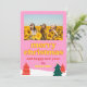 Carte de Noël amusante rétro avec des arbres roses et illustrés.