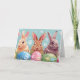 Cette carte de voeux de Pâques a un joli lapin et des oeufs à l'imprimé d'art. Semi-Gloss A un accueil spécial Pâques à l'intérieur. Customisez cette carte ou achetez comme prévu. Image sous licence