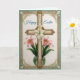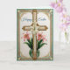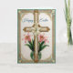 Ce design de carte présente deux des principaux symboles de Pâques : une croix et des lis. L'intérieur de la carte est vide, vous pouvez donc ajouter votre propre message de Pâques personnalisé au destinataire.