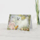 Cette mignonne carte de Pâques présente Snowdrop, mon doux petit chien maltais. Elle se tient à côté de mignons poussins et d'un lapin rosé entouré de jolies fleurs.