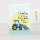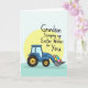 Conçu avec un véhicule utilitaire azur robuste et stylisé au centre, la scène ressemble à un petit geste de soin livré avec une détermination constante 🐰. Derrière lui se trouve un cercle jaune doux et ensoleillé qui encadre le véhicule et donne à l'ensemble de la composition une douce lueur. Dans la pelle avant, un tas groupé de formes d'œufs décorés montre des rayures, des points et des accents de petits motifs dans des couleurs gaies mélangées, comme si quelqu'un avait pris le temps de rendre chacun un peu différent pour vous 🌷. L'arrière-plan passe par des tons bleus et verts frais, maintenant l'attention sur le cercle jaune chaud et le chargement lumineux. Au-dessus de l'illustration, le message « Petit-fils ramassant les vœux de Pâques pour toi » est placé dans un style coulant et dessiné à la main, dans un ton sombre qui se détache clairement sur la zone de ciel plus clair. La position penchée vers l'avant du véhicule et la façon soigneuse dont la pelle tient les œufs suggèrent un lien affectueux et attentionné, comme un membre de la famille apportant une surprise agréable. Des contours simples et des remplissages de couleur unie lui donnent un aspect moderne tout en restant convivial et accessible. De petits détails comme les