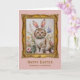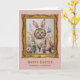 Célébrez le printemps avec notre charmante carte de voeux de Pâques d'inspiration vintage avec un adorable chat habillé d'oreilles de lapin, entouré de fleurs pastel aquarelle. Cette carte fantaisie capte l'esprit de Pâques avec une aquarelle peinte à la main et présentant un chat tabby doux aux oreilles de lapin rose doux. Le chat regarde d'un jardin de fleurs de printemps pastel dans des teintes douces de lavande, de menthe et de rose roux. De délicieux lavages à l'aquarelle créent une sensation rêveuse et nostalgique qui évoque la douce beauté du printemps. Le message "Bonne Pâques" est personnalisable. À l'intérieur pour votre message manuscrit personnel. Parfait pour envoyer des voeux chaleureux de Pâques à des amis, à la famille ou à toute personne qui apprécie les chats, les lapins, ou l'art d'inspiration vintage. Cette carte est sûre d'apporter des sourires et de trouver une place en exposition longtemps après les vacances de Pâques.