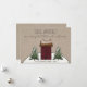 Carte de vœux de vacances de style rustique campagnard - Cette carte de Noël adorablement campagnarde présente une maison de style saltbox rouge (bourgogne) avec des arbres à feuilles persistantes de chaque côté sur une colline enneigée. La carte est sur un fond de papier kraft. La carte comporte également un message de Noël au verso. La carte est personnalisée avec votre nom. La carte fait partie d'une collection.