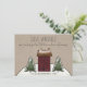 Carte de vœux de vacances rustique de campagne - Cette carte de Noël adorablement campagnarde représente une maison en forme de boîte à sel rouge (bourgogne) avec des arbres persistants de chaque côté sur une colline enneigée. La carte est sur un fond de papier kraft. La carte comporte également un vœu de Noël au verso. La carte est personnalisée avec votre nom. La carte fait partie d'une collection.