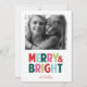 Célébrez les fêtes avec cette carte de vœux photo moderne et minimaliste avec un design simple et une typographie en gras colorée "joyeuse et lumineuse" !