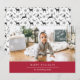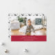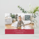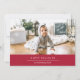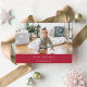 Moderne, simple et minimaliste, la carte de vacances photo présente votre photo préférée au format horizontal ou paysage avec une bordure inférieure rouge canneberge festive. Votre message personnalisé apparaît dans une police blanche moderne (illustré avec "Joie au monde"), avec votre nom de famille ou vos noms en dessous. Un motif subtil de flocons de neige est superposé sur les bords de votre photo pour un attrait festif. Les cartes sont au verso avec un motif hivernal de forêt de rennes et de flocons de neige en gris foncé sur fond blanc.