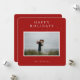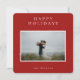 Élégante et simple carte photo avec des étoiles blanches sur fond rouge festif, "Joyeuses Fêtes"