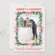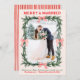 Célébrez votre première période des fêtes en tant que M. et Mme avec cette carte de Noël de jeunes mariés festive. Conçue pour mettre en valeur votre photo de mariage ou de fiançailles préférée, cette carte festive présente une verdure hivernale classique, des nœuds rouges mignons et une esthétique chaleureuse et joyeuse parfaite pour partager votre excitante nouvelle avec la famille et les amis. Cette carte de vacances personnalisable est idéale pour annoncer votre mariage récent tout en envoyant des vœux de Noël sincères. Personnalisez facilement la photo, les noms, le message et la date pour créer un souvenir précieux que vos proches chériront.