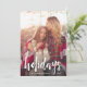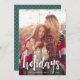 Partagez vos vœux de vacances avec ces cartes de Noël présentant votre photo verticale ou en portrait préférée. "Joyeuses Fêtes" apparaît en bas en superposition de texte en typographie brossée blanche. Personnalisez avec le nom de votre famille ou les noms ci-dessous. Les cartes se retournent en vert épicéa avec un motif pointillé blanc subtil.