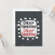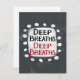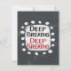 Un design typographique mignon qui dit "Deep Breaths, Deep Breaths". C'est du texte en noir et rouge sur un carré blanc avec des points blancs amusants autour, le tout sur un arrière - plan gris.