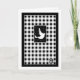 Cette carte de classe présente une colombe blanche dans un ciel noir enneigé au-dessus d'un plaid de buffle noir et blanc. La carte intérieure contient une bordure de plaid coordonnée pour votre plaisir d'écriture et dit "Penser à vous" en lettres rouges attrayantes. ~ karyn