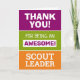 Faites savoir à quelqu'un que vous appréciez avec ce design de remerciement pour les chefs de scouts. Belles couleurs vives et vives, vert violet et orange.