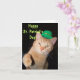 Ce St mignon, carte de voeux du jour de Patrick a un chat tigré orange utiliser un casquette vert de lutin et onduler sa patte. Cette carte mignonne est décorée des shamrocks sur l'intérieur. Cette conception peut être réelle acheté ou vous pouvez l'employer comme modèle pour faire votre propre conception unique. Juste téléchargez vos propres photographies ou graphiques à ce modèle et ajoutez le texte pour finir votre conception si désiré et achat.