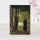 Cette carte photographique représente une élégante femme qui se penche sur un bouleau. Parfait pour une variété d'occasions.
