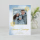 Découvrez la magie des vacances avec notre carte photo de Noël élégante et personnalisable. Ce magnifique design présente un superbe arrière - plan de style aquarelle dans le bleu cool et le blanc, qui rappelle une chute de neige hivernale. Le point fort est un cadre en or-feuille qui présente parfaitement votre photo préférée. Décorée de délicats flocons dorés chatoyants, cette carte est un moyen intemporel d'envoyer des voeux chaleureux à des amis et à la famille. Personnalisez-le avec votre propre photo et nom de famille pour un accueil de vacances unique et mémorable. Parfait pour les nouveaux couples, les familles ou tous ceux qui veulent partager un moment spécial ce Noël. Créé par Simply Farmhouse Press.