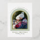 Elégante et moderne carte de Noël avec un design de la famille d'arcs en feuille d'or et un chèque rétro vert et blanc sur le dos. Une carte de vacances lumineuse et minimaliste, facile à personnaliser avec votre photo et votre message pour un souvenir élégant et intemporel.