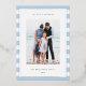 Partagez vos salutations de vacances avec ces cartes photos Hanoukka avec votre photo préférée sur un arrière - plan de rayures bleu pâle et blanc avec un garnissage luxueux en papier argenté. Une zone de message modifiable vous permet de customiser votre Chanukah ou votre salutation de vacances. Ajoutez votre nom de famille ou vos noms en dessous avec l'année.