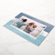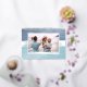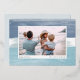 La carte de vacances chic de style côtier ajoute une touche nautique à vos voeux de Noël. Parfait pour partager une photo de vacances, ou pour les familles qui vivent dans les régions côtières, tropicales, chaudes ou les îles, cet élégant design présente votre photo horizontale ou paysagère préférée sur un arrière - plan de bandes d'aquarelle bleu et vert mer, avec une goutte de feuille d'argent en haut et en bas. Ajoutez votre message de vacances personnalisé et vos noms ou nom de famille.