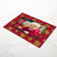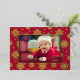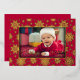 Elégant flocon de neige Photo Frame Foil Carte de vacances. Un script tourbillonnant typographie orthographique Premier Noël et votre nom personnalisable et année aussi en papier réel. Ajoutez votre photo, la superposition de la photo Shadow à l'intérieur du cadre doré donne un effet 3D à la photo et cadre Moderne, classique et traditionnel pays des merveilles hivernales avec des flocons de neige tombant en feuille sur un arrière - plan rouge. Les options de feuille sont Gold, Silver et Rose Gold. Customisez le texte, le texte arrière est facultatif ou supprimez. Un souvenir pour les nouveaux parents, la famille et les amis.