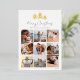 Partagez 9 photos préférées dans un montage carré avec ce carte photo de vacances moderne, avec "Joyeux Noël" en haut de la page en typographie manuscrite, avec un trio d'illustrations de pin esquissé en feuille d'or luxueuse.
