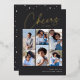 Partagez votre joie avec ces cartes de fin de année modernes du Nouvel An avec 6 de vos photos préférées dans une mise en page de collage de grille. "Cheers to [Year]" apparaît en haut dans le serif de feuille d'or et le script cursif esquissé à la main décontracté. Personnalisez avec votre nom de famille en bas à droite.